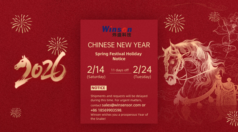 Please be informed that Winsen will close from "February 14, 2026" to "February 24, 2026" for the coming Spring Festival holiday, with a total of 11 days for vacation and compensatory leave. We will resume normal work on "February 25, 2026" and will work on "February 28, 2026" as a compensatory working day.