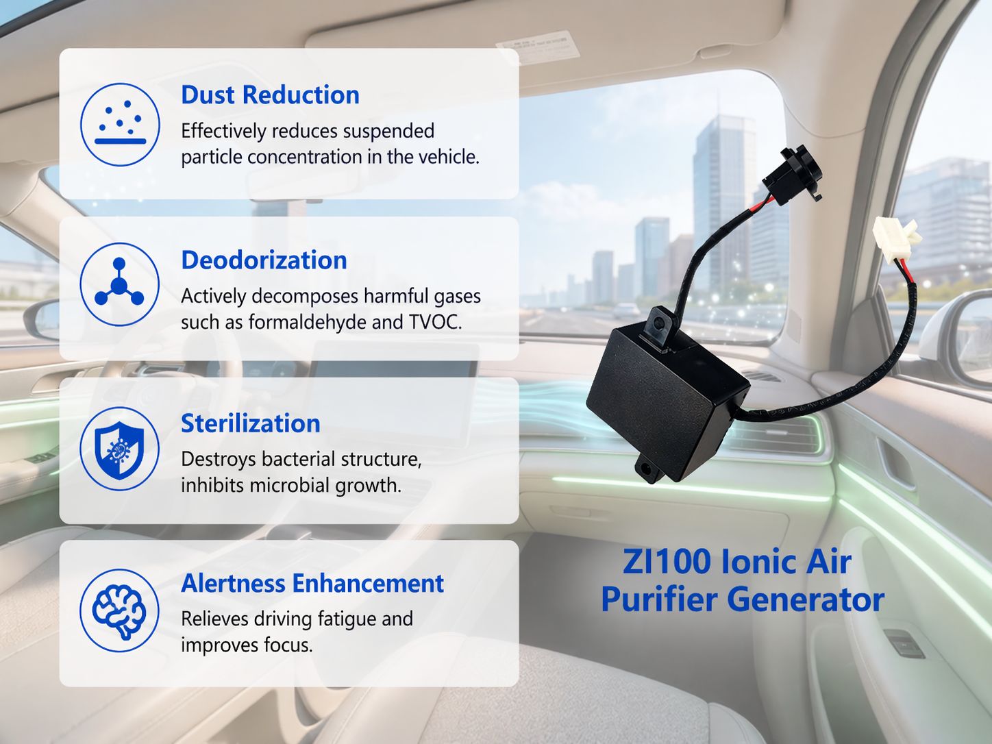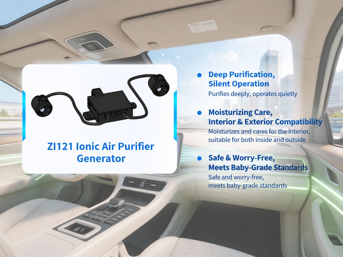 With ZI100 negative ion generation and ZI121 water ion technology, vehicles can move closer to a “mobile clean-air space”—helping every trip feel fresher, gentler, and more relaxing.