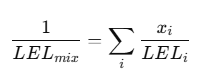 Real sites often have mixtures (e.g., methane + propane + solvent vapors). A widely used approximation for the mixture LEL is Le Chatelier’s mixing rule, commonly referenced in safety engineering literature:
