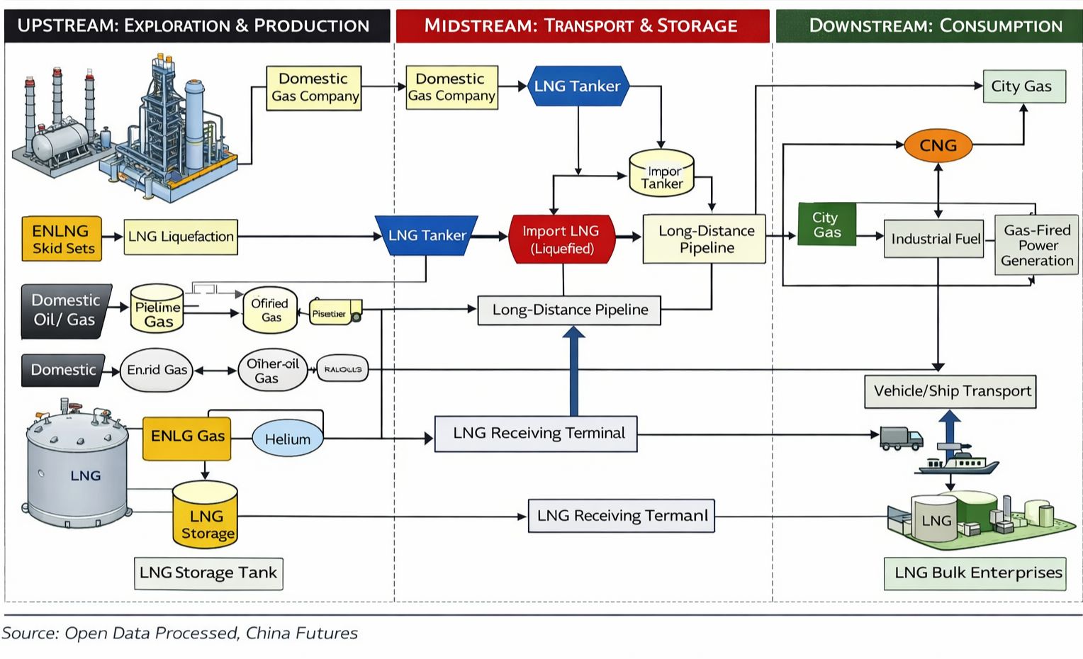 - Gas Storage & Regulation: Gas storage facilities regulate supply-demand peaks.